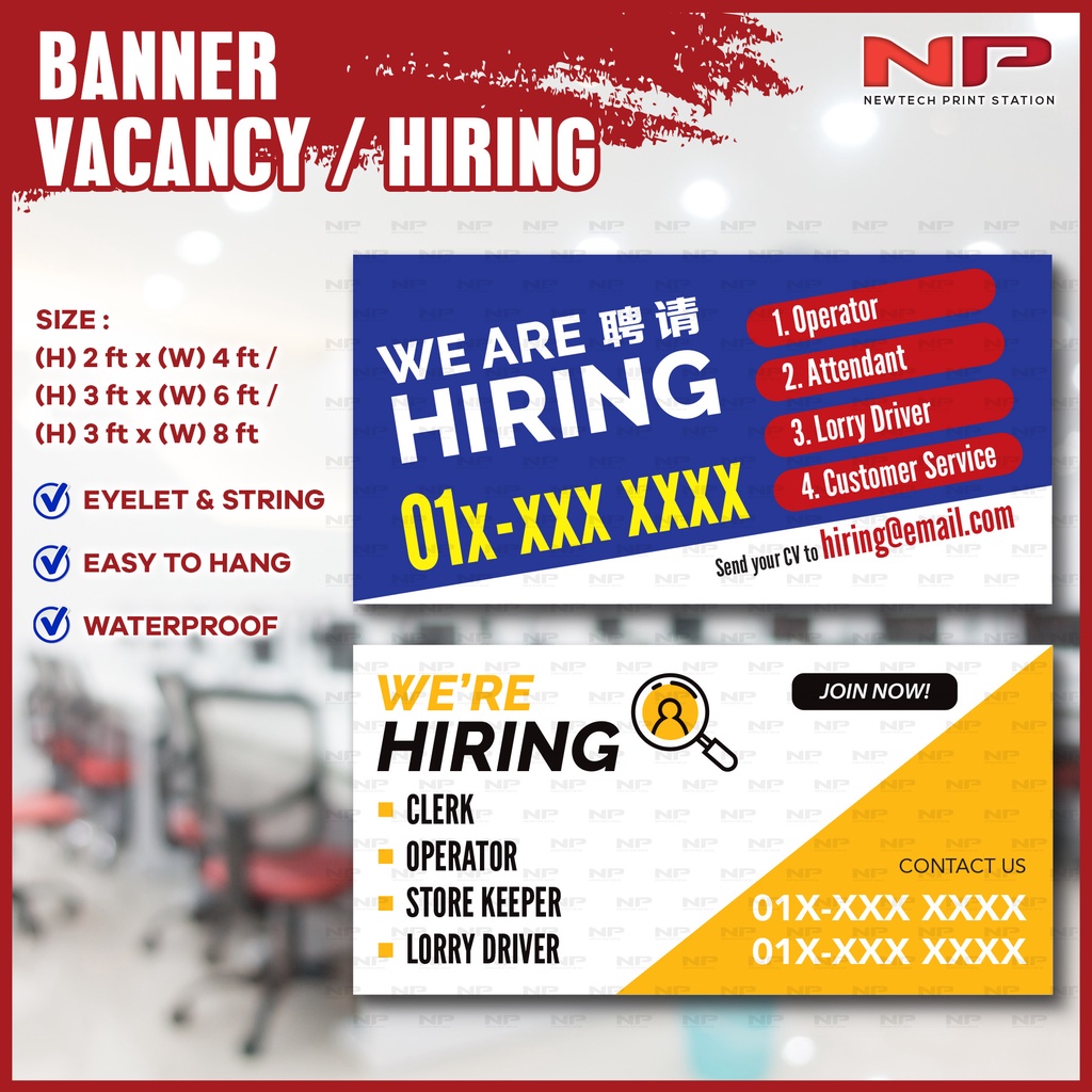 Buy vacancy banner printing jawatan kosong 聘请征聘布条打印 free ready template in kuala lumpur,malaysia.
